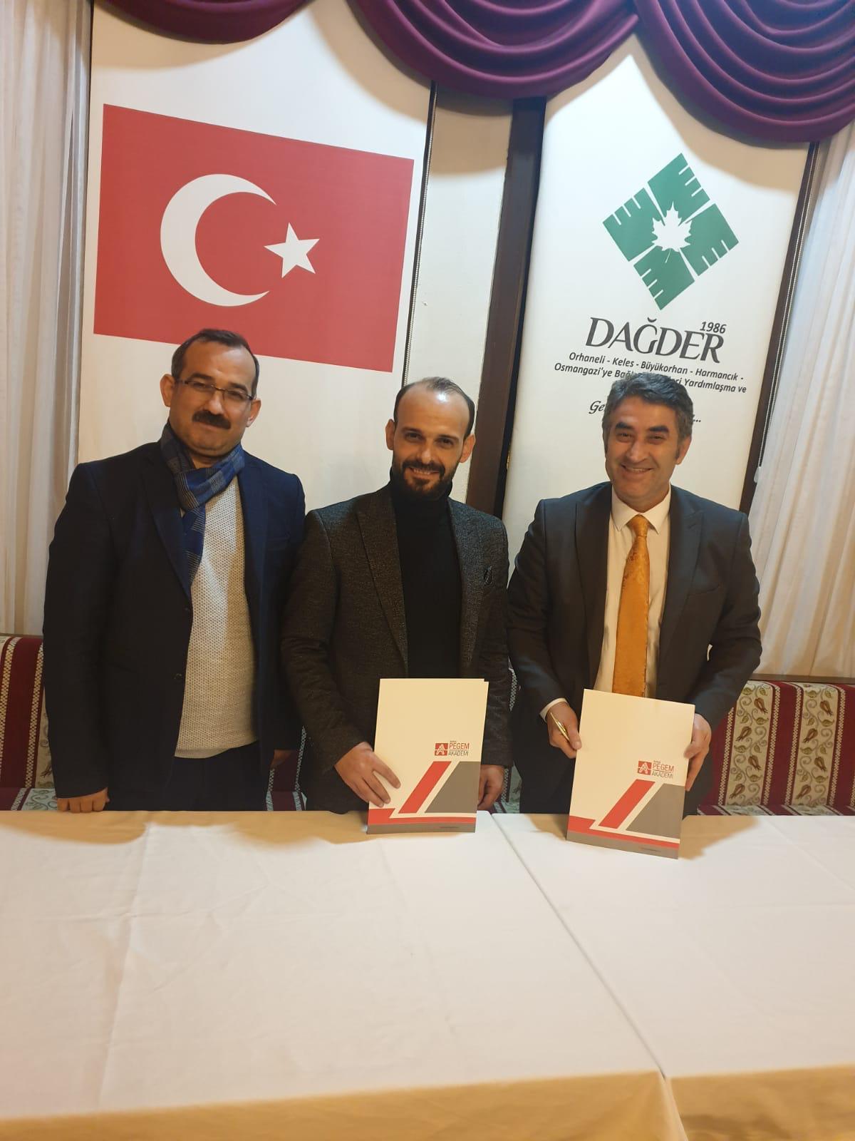 MİMKA Eğitim Grup Genel Müdürü Mustafa Köse ile DAĞDER Genel Başkanı Yaşar TÜRK arasında Pegem Akademi’nin tüm kurs türlerinde geçerli olmak üzere protokol imzalanmıştır..